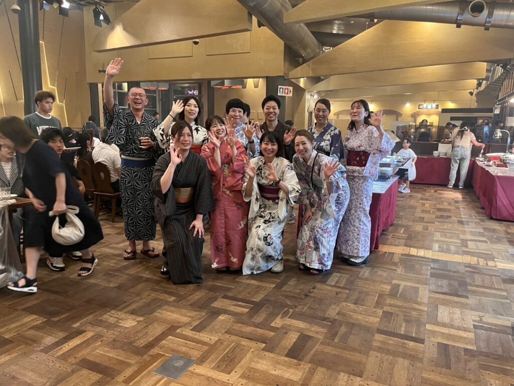 8月にスタッフとご家族をお招きして大きな慰労会をされるという素晴らしい企画に弊社も何か協力できないかと、希望者へ、浴衣のレンタルとお着付けを無料で提供